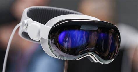 Key features include Apple's first 3D camera for capturing spatial photos and videos, lifelike FaceTime video tiles for enhanced virtual meetings, and a sleek design integrating advanced technology into a compact form. The device includes a custom microOLED display system, spatial audio, and a dual-chip design featuring Apple silicon. Apple Vision Pro operates on VisionOS, Apple's first spatial operating system, designed for intuitive control and interaction in a spatial computing environment.
