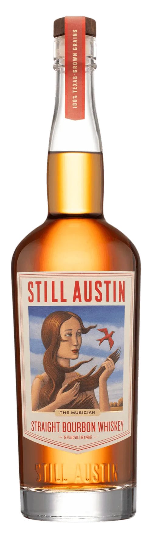 Still Austin Whiskey Co. focuses on their product, "The Musician Straight Bourbon Whiskey." This bourbon is described as a blend of art and science, akin to music, bringing people closer and making them feel more alive. The mashbill consists of 70% white corn, 25% rye, and 5% malted barley, all sourced from Texas. The tasting notes include a nose of pineapple, toasted coconut, and s'mores, a palate of cinnamon, brown butter, and almonds, and a finish with tropical fruit, toffee, and baking spices. The bourbon has an ABV of 49.2% (98.4 proof). The website also mentions that the sweetness of chef-grade white corn complements the spiciness of the high-rye mashbill, creating a unique and lasting finish.